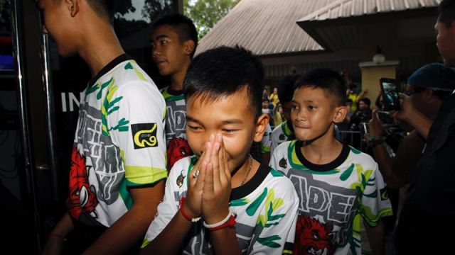 Los doce chicos que junto a su entrenador pasaron más de dos semanas atrapados en una cueva del norte de Tailandia describieron en rueda de prensa como "milagroso" el momento en que los equipos de rescate les localizaron en la gruta.