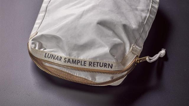 La bolsa conservada desde el año 1969 tiene una etiqueta que pone "retorno muestra lunar" y se utilizó para transportar más de 500 gramos de polvo procedente de la luna. Su subasta ha coincidido con el 48 aniversario de la llegada del hombre a la Luna