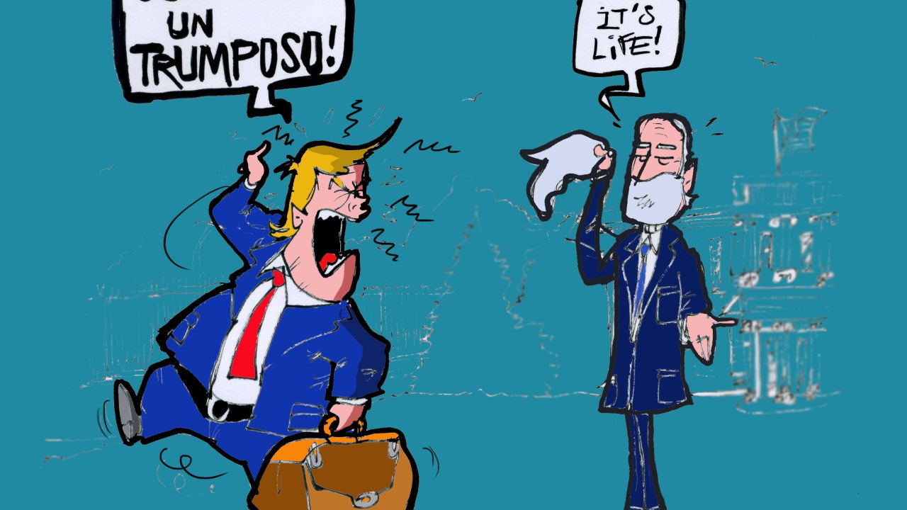 Nuestro ilustrador, Alfredo Boto-Hervás, ha diseñado una viñeta sobre las elecciones presidenciales de EEUU en la que se puede ver a Donald Trump con una maleta saliendo de la Casa Blanca. "Joe... eres un tramposo", dice Donald Trump, a lo que Biden responde: "It's life" (es la vida).
