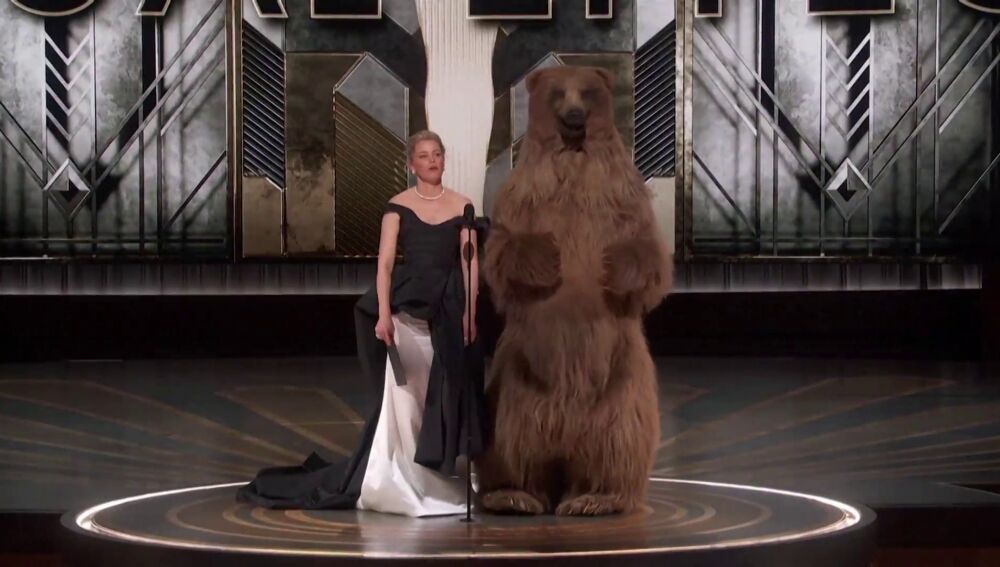 No fue la única sorpresa. Un burro, que aparece en una de las películas nominadas, y un oso gigante, haciendo referencia al polémico film 'Cocaine Bear', también participaron en la 95.ª gala de los Premios Oscar.