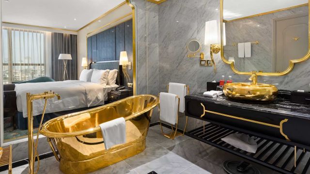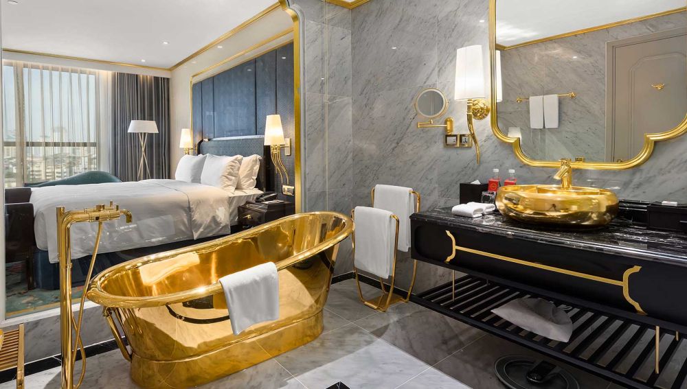Vietnam ha inaugurado este año un hotel en su capital, Hanói. Pero este hotel guarda una gran diferencia con el resto que lo hace único en el mundo: es de oro. El impresionante edificio cuenta con 120.000 metros cuadrados de fachada recubierta con el preciado metal, pero no es lo único.