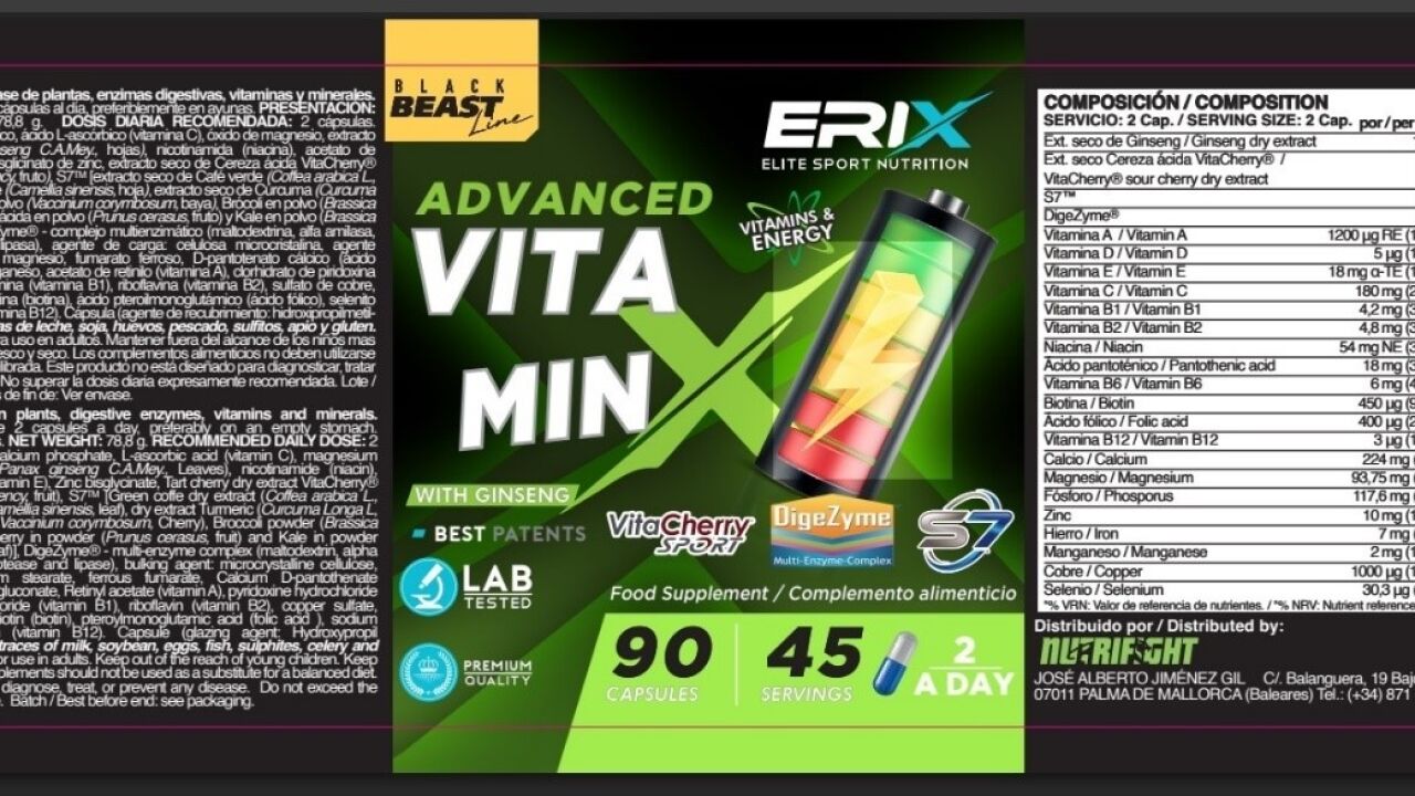 Un lote de un suplemento alimenticio con dosis elevadas de vitamina D ha provocado más de una decena de ingresos en Baleares. El producto implicado, identificado como 'Advanced Vitamin x 90 cápsulas' de la marca Erix Elite Sport, ha sido inmovilizado por las autoridades sanitarias después de confirmarse un presunto error en su formulación.