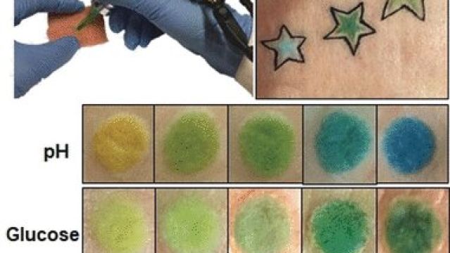 Los investigadores, como se detalla en la revista Angewandte Chemie, identificaron y adaptaron tres sensores químicos colorimétricos que cambian en respuesta al nivel de concentración de estos tres biomarcadores. Más tarde, aplicaron varios tatuajes de sensores en piel de cerdo –todavía no se ha aplicado en humanos-. Cuando cambiaron el pH o las concentraciones de glucosa o albúmina, los colores de las áreas decoradas cambiaron.