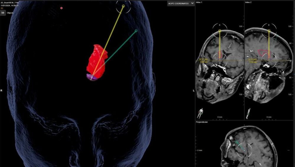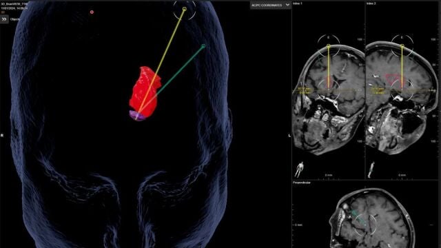 “La intervención consiste en la implantación de dos electrodos profundos, uno en cada hemisferio cerebral, de una manera mínimamente invasiva, a través de dos pequeños orificios en el cráneo. Estos electrodos están conectados a una batería subcutánea que situamos bajo la clavícula del paciente y que producen impulsos eléctricos en una diana muy concreta del cerebro”, explica Sousa.
