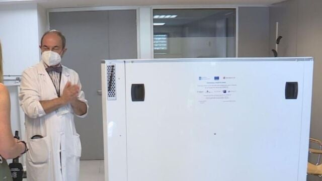 Nos muestra un dispositivo, “que es un futuro será más pequeño”, capaz de variar el curso de diferentes enfermedades, ya que consigue limpiar el aire de patógenos. Todavía no tiene nombre, pero ya saben que funciona y erradica el virus del ambiente, lo que ayudaría a disminuir la transmisión.