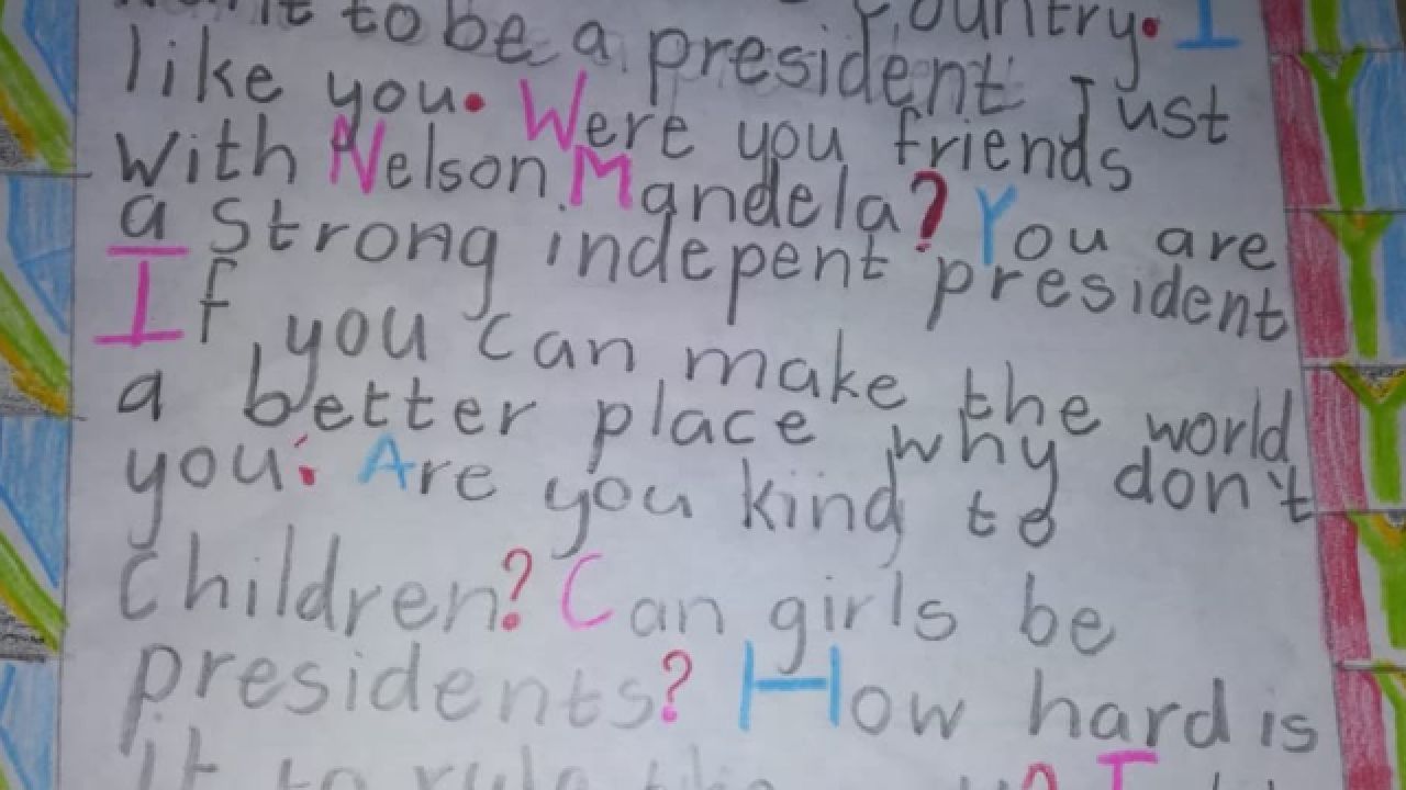 El presidente de Sudáfrica ha compartido una carta en su cuenta de Twitter en la que una niña le pregunta si puede ser presidenta. En la misiva, la niña le pregunta cosas como si es duro gobernar el mundo o si el presidente es amable con los niños. Ante esto, el presidente le ha animado a presentarse cuando sea mayor y le ha asegurado que él la votará.