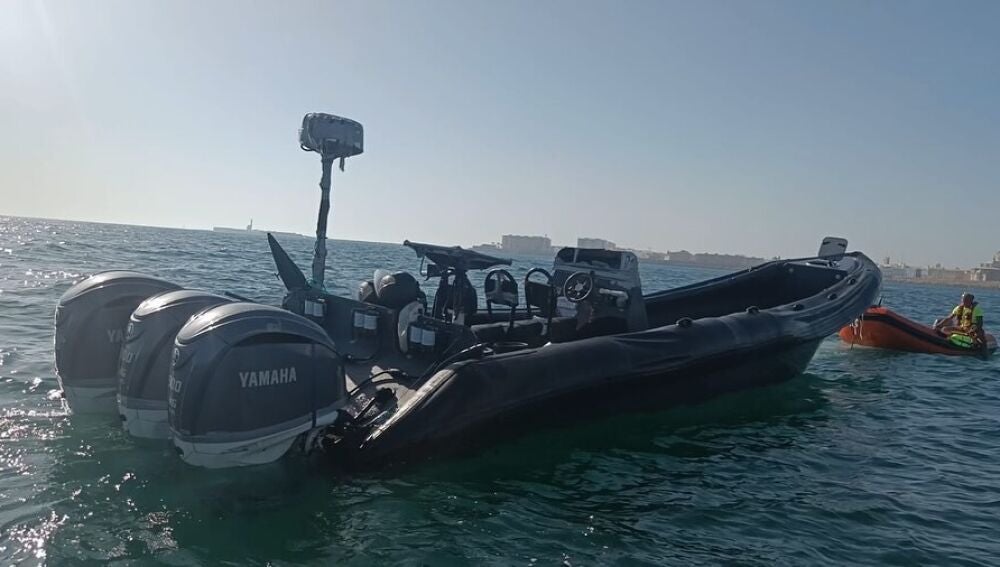 Los narcos dejaron la embarcación frente a la playa de Santa María del Mar causando gran revuelo entre las personas que se encontraban en la playa.