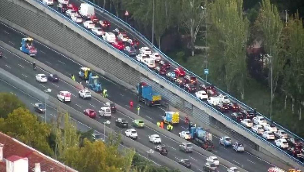 Madrid ha amanecido con decenas de kilómetros de atasco debido a un accidente entre dos camiones en la M-30.