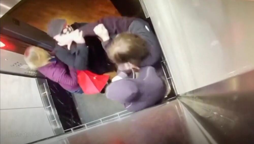 Los hechos fueron grabados por las cámaras de seguridad del interior de un ascensor, al que se subieron un total de tres personas. La tensión comenzó cuando el joven, la cuarta persona en cuestión, accedió también al elevador.