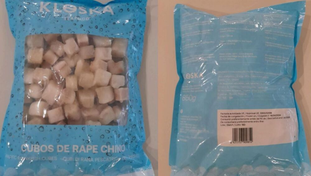 La Agencia Española de Seguridad Alimentaria y Nutrición (Aesan), adscrita al Ministerio de Derechos Sociales, Consumo y Agenda 2030, advierte de la presencia de moluscos en productos de cubos de rape chino congelado de la marca Kloska Seafood procedentes de China. Avisa a las personas con alergia de que el producto se está comercializando y los moluscos no están declarados en el etiquetado de ingredientes.