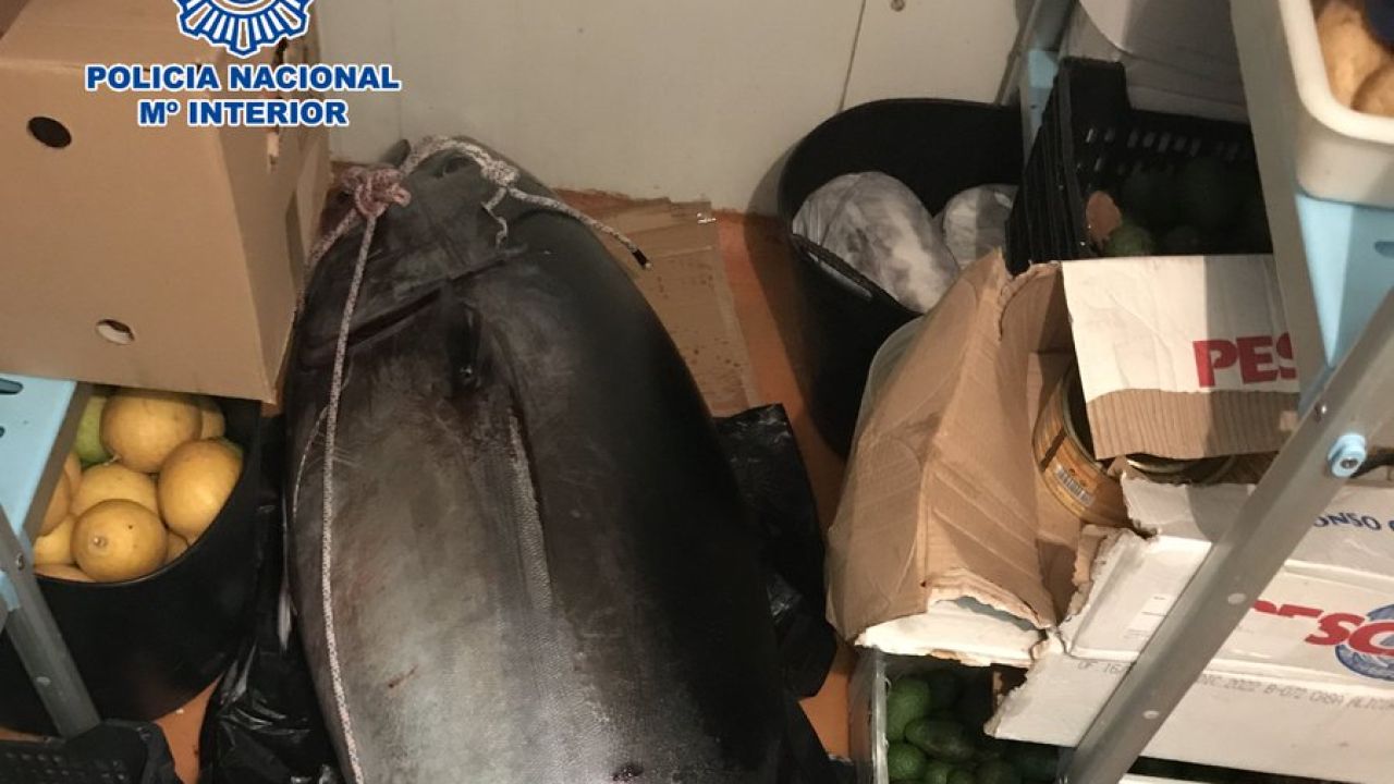 La Policía Nacional ha decomisado en Puerto Banús, en Marbella (Málaga), un atún rojo pescado de forma irregular y ha propuesto para sanción a cuatro personas, dos pescadores y otros dos hombres relacionados con la captura del ejemplar en una embarcación de recreo y su posterior transporte hasta la cámara frigorífica de un restaurante de la zona.