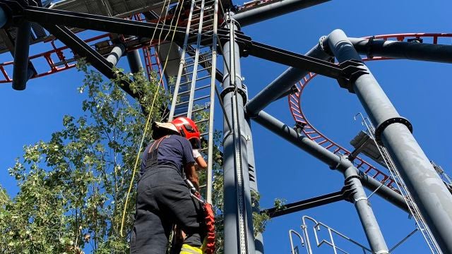 Cuatro dotaciones de Bomberos Madrid han tenido que realizar el rescate de 10 visitantes que disfrutaban de la atracción conocida como La Tarántula, en el Parque de Atracciones de la capital.