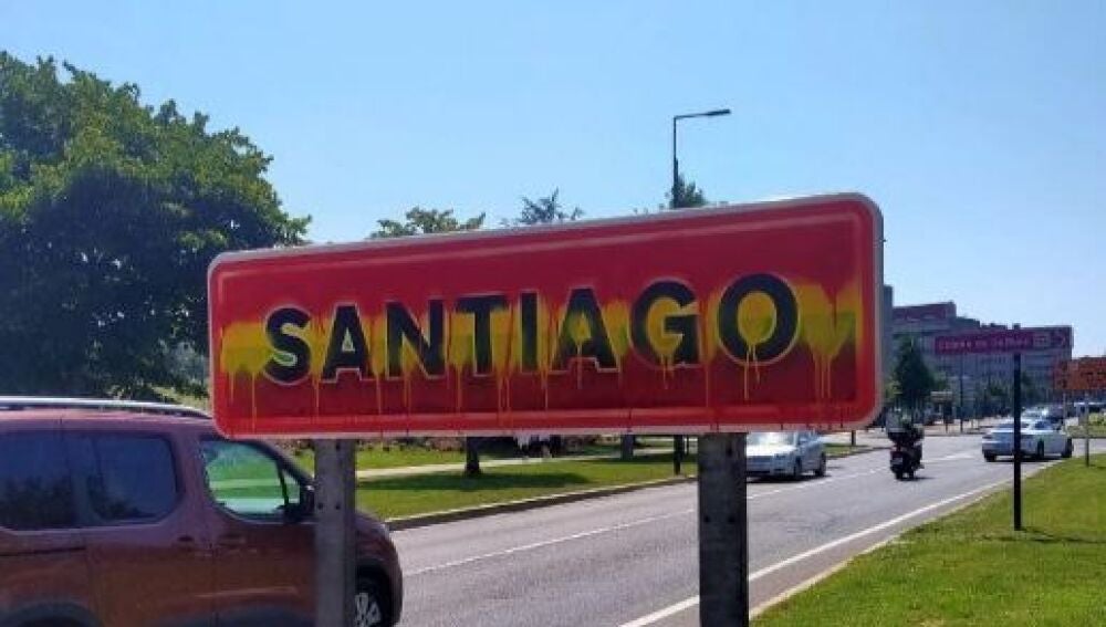 En concreto, el cartel que ha sido vandalizado se encuentra en la entrada a Compostela por San Lázaro, por donde acceden a la ciudad los peregrinos que realizan en Camino Francés a Santiago y que, en las últimas horas, se han encontrado con un acto vandálico en que los artífices utilizaron los colores de la bandera de España para tapar los que simbolizan al colectivo LGTBIQ+. Otros dos letreros que indican la entrada en la capital gallega por distintos puntos también habían sido pintados con los colores de la bandera arcoíris.