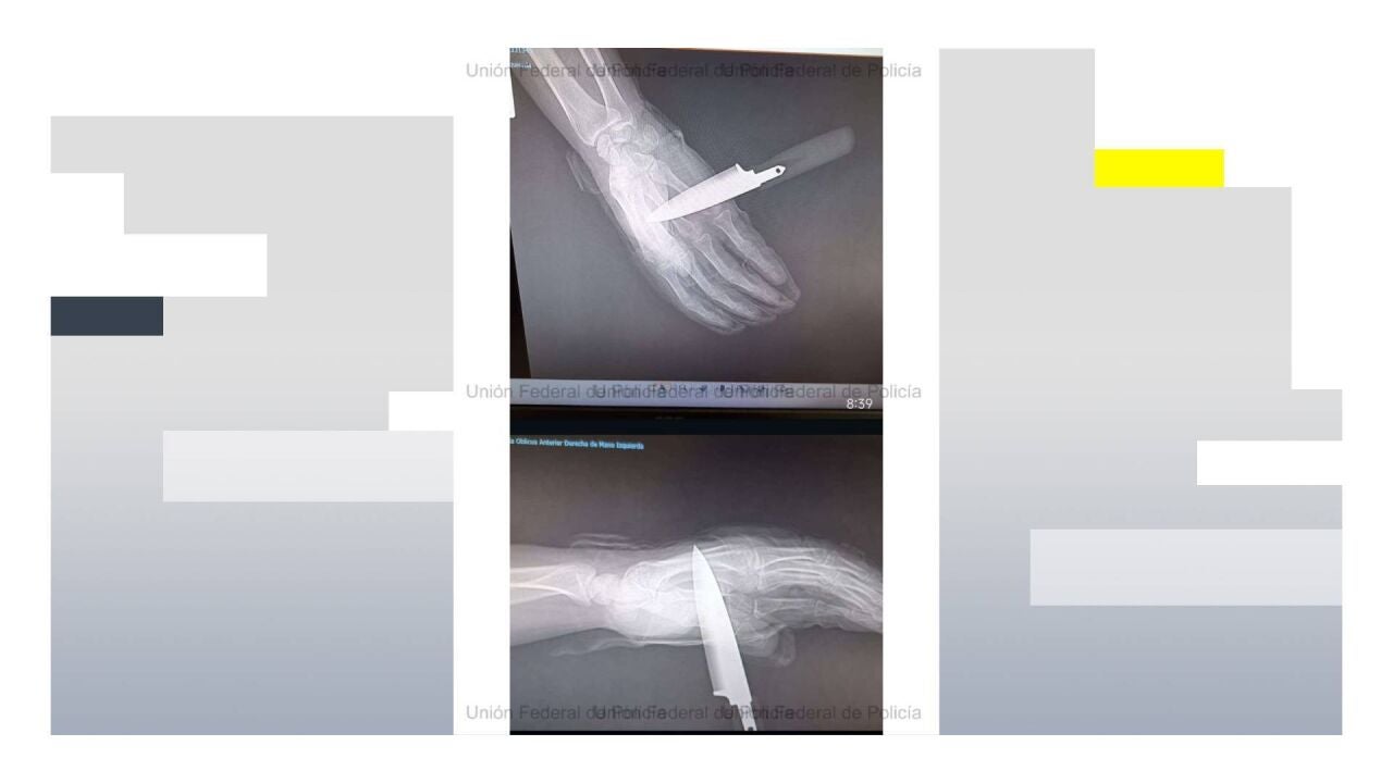 Por su parte, el agente herido tuvo que ser trasladado a un centro hospitalario con el cuchillo aún clavado en la mano.