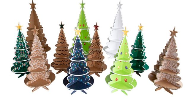 Esta combinación de ideas es de la que han salido los abetos de cartón 100% sostenibles de una empresa de artes gráficas de Silleda, en Pontevedra. Tras las fiestas, cada año se tiran en España unos dos millones de abetos. Muchos ayuntamientos incluso instalan puntos de recogida específicos, para que una vez terminadas las fiestas los árboles de Navidad naturales no se tiren directamente a los contenedores. En la mayoría de los casos, su destino es el triturado.