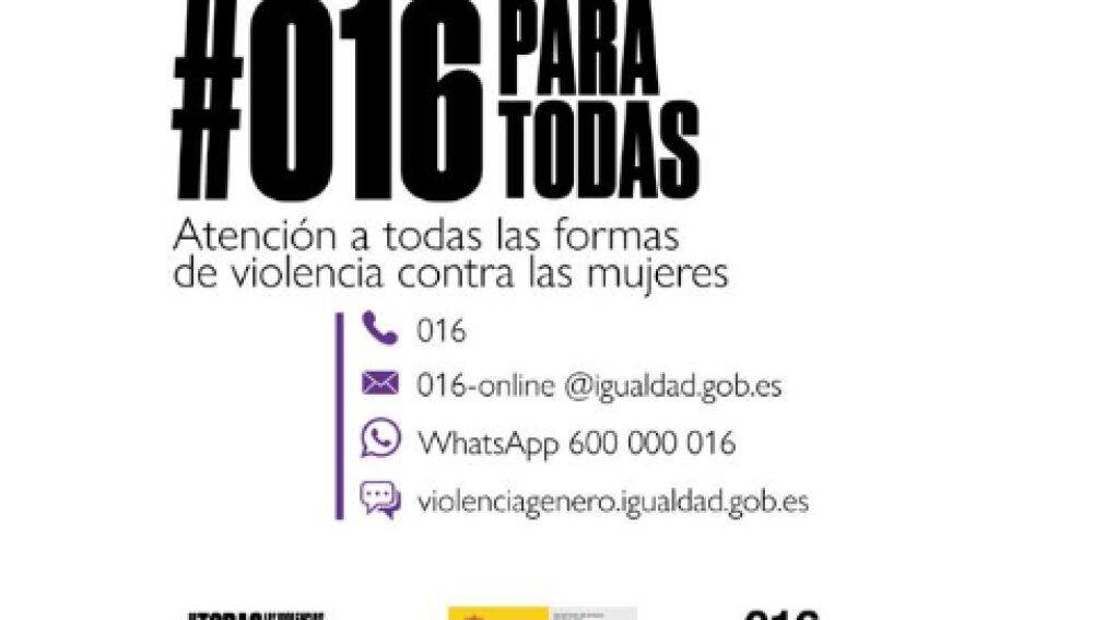 El Ministerio de Igualdad, por medio de la Delegación del Gobierno contra la Violencia de Género, ha recordado las medidas a tomar por las víctimas de la violencia de género. El teléfono 016, las consultas online a través del email 016-online@igualdad.gob.es, el canal del WhatsApp en el número 600 000 016 y el chat online, accesible desde la página web violenciagenero.igualdad.gob.es/, dan servicio las 24 horas todos los días.