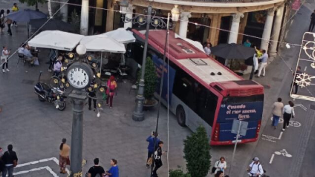 El suceso ha tenido lugar a pocos metros de una plaza en la que se encuentran varias de las paradas centrales del servicio de autobuses urbanos. La Policía Nacional ha retirado el autobús lo antes posible y este ha vuelto a su recorrido habitual. El Ayuntamiento investigará las causas del accidente.