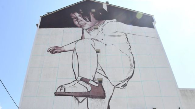 La imagen, o imágenes, no dejan indiferente a nadie. Ni a los propios vecinos, ni mucho menos a los visitantes. Desde hace unos años es habitual pasear por Cambre, en A Coruña, y encontrarse con murales de gran tamaño decorando fachadas de todo tipo de edificios. Lugares antes dañados por el paso del tiempo y las inclemencias meteorológicas que ahora se han convertido en verdaderas paredes de una galería de arte.