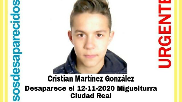 La Policía Nacional ha hecho un llamamiento a la población para encontar a Cristian Martínez González, desaparecido en la localidad de Miguelturra, Ciudad Real. En las redes sociales la Policía ha colgado una fotografía del menor, del que no se sabe nada desde el pasado 12 de noviembre.