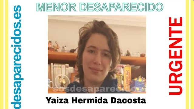 La joven desapareció el pasado 5 de enero en Ourense. La chica se llama Yaiza Hermida Dacosta, mide 1,65 metros, es de complexión delgada y tiene el pelo ondulado y castaño. Cuando desapareció llevaba jersey a rayas azules, una sudadera azul y un vaquero roto por la rodilla.