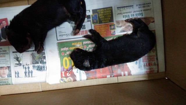 Los cachorros estaban deshidratados y en muy malas condiciones, por lo que los voluntarios hicieron lo posible para estabilizarlos pero creen que los perros tenían daños por dentro, ya que seguramente "antes de tirarlos al contenedor recibieron varios golpes contra el suelo" y no sobrevivieron.