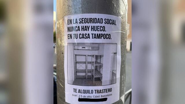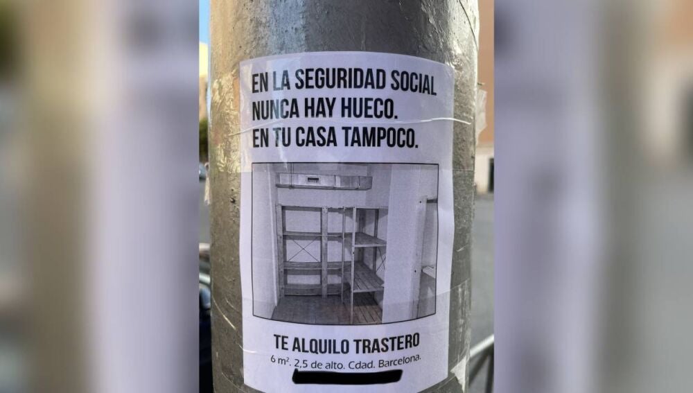 Un espacio ubicado en la Avenida Ciudad Barcelona de Madrid que dispone de 6 metros cuadrados y 2,5 metros de altura. Un trastero aparentemente normal si no fuese por los carteles que anuncian la posibilidad de alquilarlo que se han hecho virales en Twitter.