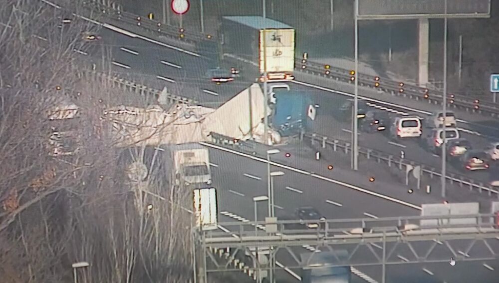 Junto a este mensaje han adjuntado una serie de fotografías del incidente en las que se puede ver al camión parcialmente destruido ocupando la mayor parte de la calzada mientras las grúas tratan de extraerlo del lugar.