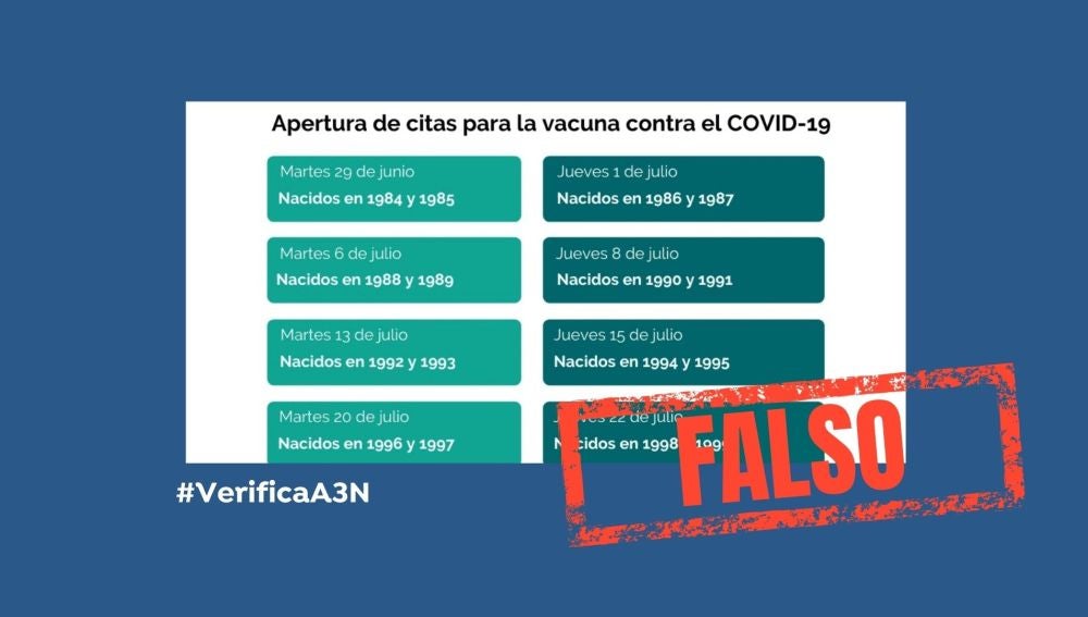 Circula una cadena engañosa a través de WhatsApp que afecta a los jóvenes murcianos. El mensaje en cuestión cita a los nacidos en 1994 y 1995 para recibir la vacuna contra el coronavirus a partir del próximo 15 de julio. Esto no es cierto ni información oficial, aunque la imagen que acompaña a este mensaje es real pero pertenece un calendario provisional del Gobierno de Aragón, no de la Región de Murcia.
