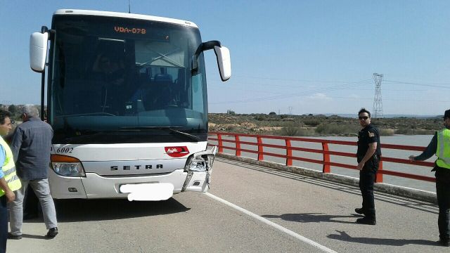 Como consecuencia del impacto con el autobús, en el que viajaban ocho personas que han salido ilesas, el turismo ha roto la barandilla del puente y ha caído al río.