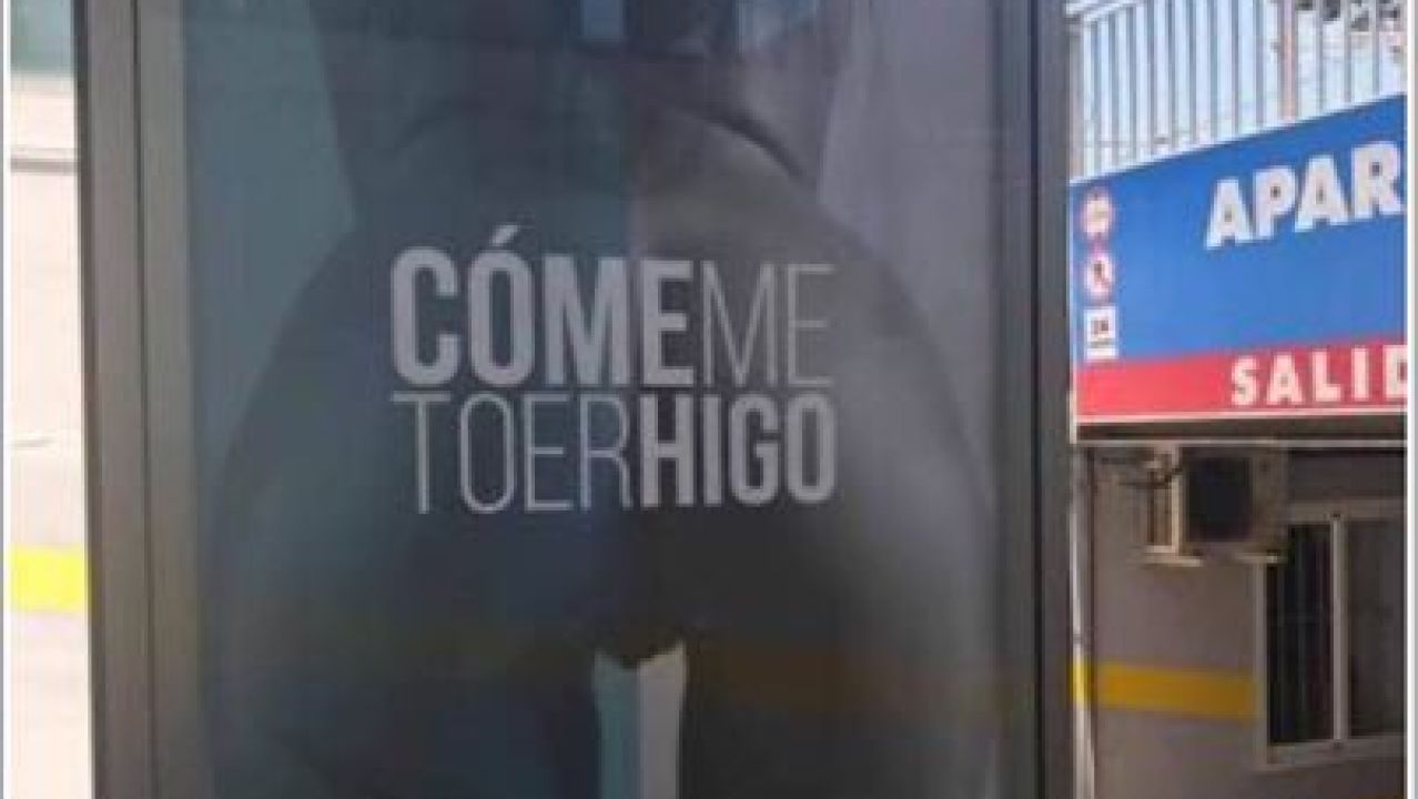 El cartel, que fue instalado en los 'mupis' de publicidad situados en el entorno del aparcamiento subterráneo municipal, de cuya gestión se encarga una empresa privada, contiene la imagen de un trasero desnudo de mujer, con la zona genital a la vista, y se apoya en el eslogan "Cómeme toerhigo" (sic).