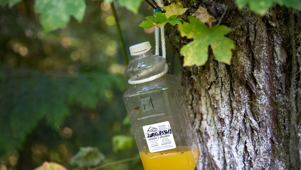 Si lo que queremos es deshacernos de estos insectos, no podemos dejar nada al azar, lo que necesitamos hacer es una trampa para cazar avispas. Para ello necesitaremos: una botella de plástico, agua, azúcar y cerveza rubia. Mezclando estos tres ingredientes dentro de la botella, le daremos la vuelta y haremos un agujero en un lateral. El olor que produce es muy atractivo para las avispas, que entrarán en el recipiente por el agujero, quedando pegadas a la cerveza y muriendo ahogadas.