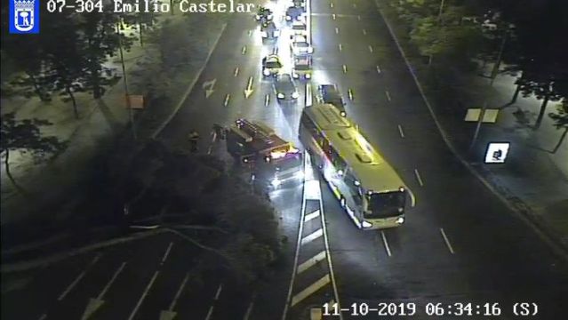 El paseo de la Castellana de Madrid permanece cortado parcialmente a la altura de la glorieta de Emilio Castelar en sentido plaza del Doctor Marañón, si bien ya se han abierto dos carriles y solo permanece uno cerrado, tras la caída de un árbol a primera hora de este viernes.