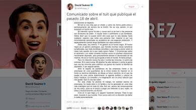 El humorista David Suárez ha publicado a través de su cuenta de Twitter un comunicado tras la enorme polémica generada por uno de sus mensajes en el que aludía a las personas con síndrome de Down.