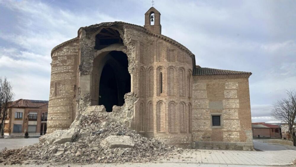 Carmen no puede contener las lágrimas cuando nos la encontramos junto a la iglesia de la Asunción, de Muriel de Zapardiel, Valladolid. Mira el ábside que colapsó hace unos días y se viene abajo, aún visibles toneladas de escombros procedentes del derrumbe. De estilo románico-mudéjar, cuenta con la declaración de Bien de Interés Cultural.“Menos mal que ocurrió un lunes a primera hora de la mañana, porque el día anterior hubo misa y la catástrofe podría haber sido tremenda”, explica la vecina.
