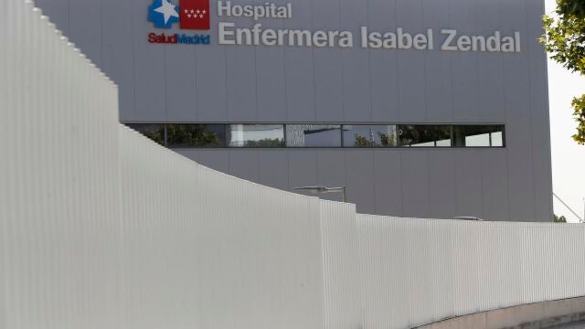 Un falso techo de la fachada principal del Hospital Enfermera Isabel Zendal, junto a la centralita del Summa 112, se ha desprendido este miércoles por la noche sin causar heridos.