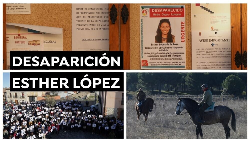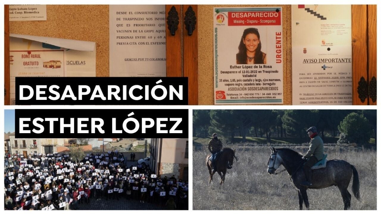 Esther López desapareció el pasado 12 de enero en Traspinedo (Valladolid). Esta misma noche estuvo viendo un partido de fútbol en un bar del pueblo junto a unos amigos. Después se fue en el coche de uno de ellos. Como los amigos que iban en el coche no querían continuar la fiesta, pero Esther sí, la mujer de 35 años decidió bajarse del coche. Desde entonces, no hay rastro de ella.Los investigadores de la Guardia Civil han podido comprobar que la última conexión de su móvil se registró a las 05:30 horas de esa misma noche.