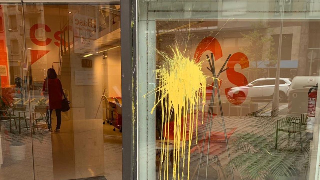 Pintadas en las paredes, cristales rotos y un extintor que ha sido vaciado en la sala de reuniones. Así ha amanecido esta mañana la central del partido naranja.
