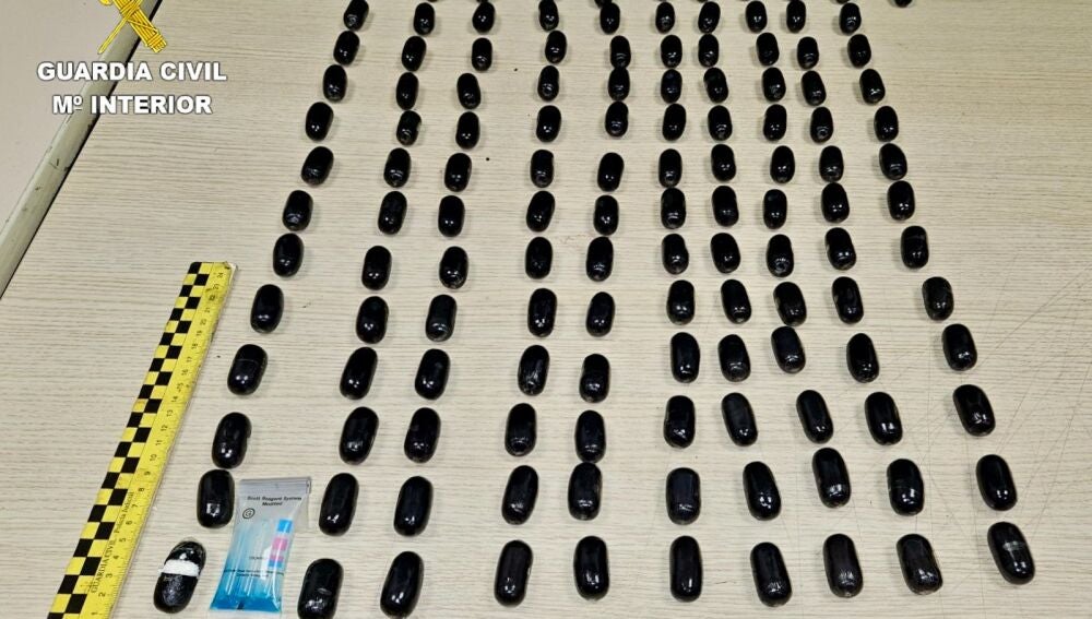 El interrogado -y posterior detenido- respondía de forma incoherente. El comportamiento levantó las sospechas de los agentes y solicitaron que se sometiera a una prueba de rayos X para comprobar la posible existencia de objetos en el interior de su organismo. Y así fue: llevaba1.480 gramos de cocaína distribuidos en 153 cilindros dentro de su cuerpo.