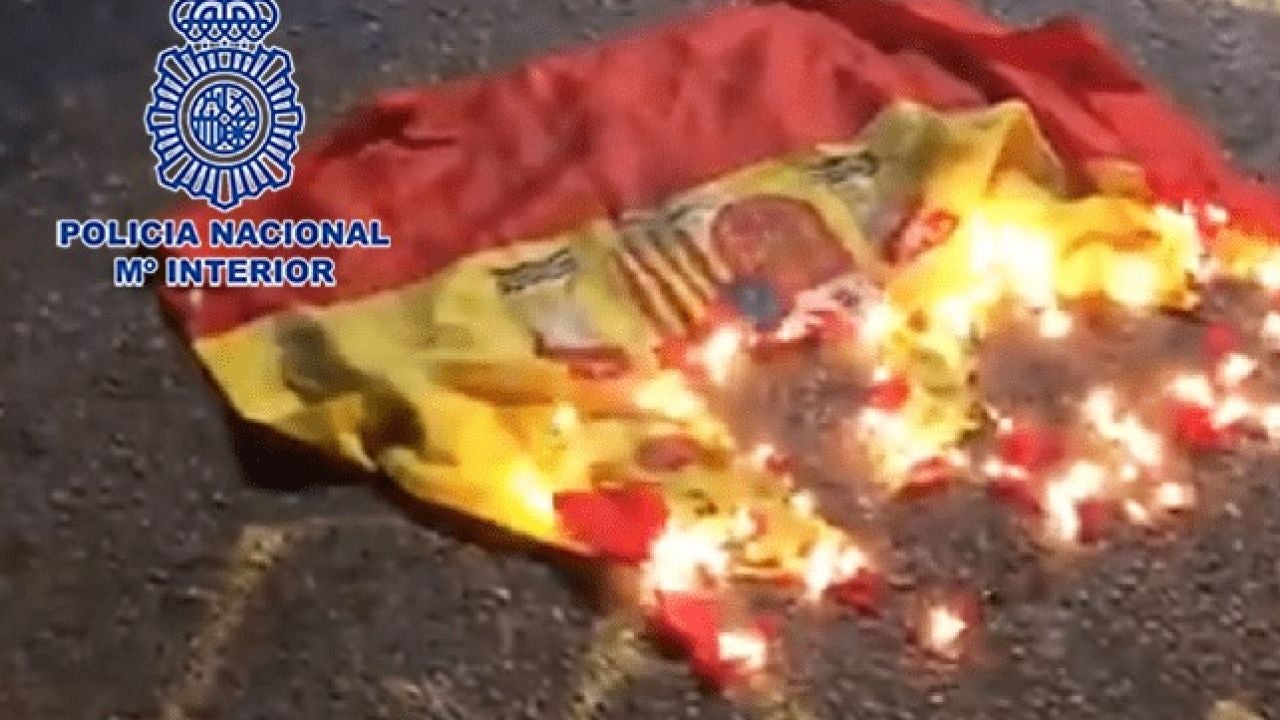 La Policía Nacional ha detenido a un joven de 19 años de edad como "presunto autor de un delito de ultraje a España por la quema de una bandera nacional", según han informado desde el Cuerpo. Se trata de un chico de nacionalidad española al que los agentes le pillaron 'in franganti' dando quema a la bandera del país con un mechero.