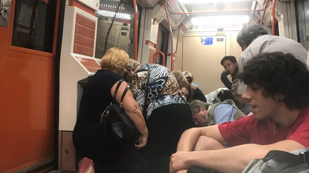 Los pasajeros del vagón se asustaron y algunos, incluso, se tiraron al suelo, según varias fotos publicadas en las redes sociales. Uno de los viajeros activó el freno de emergencia, lo que motivó que se detuviese a aproximadamente 150 metros de la estación de El Carmen.