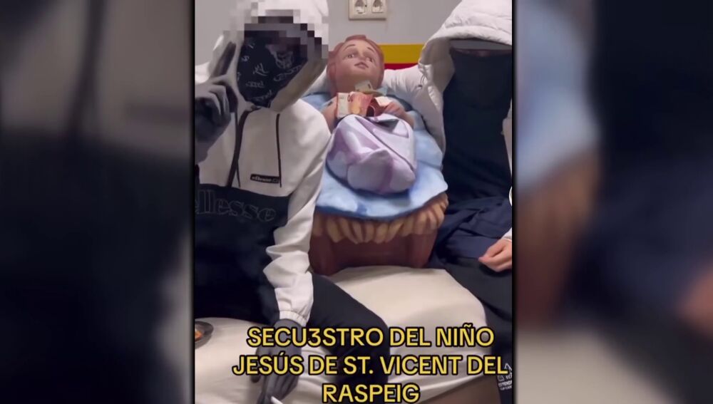 En el vídeo que difundieron en redes sociales cuando se llevaron la figura, decían: "Les hablan los secuestradores de San Vicente, y tenemos aquí al niño Jesús y queremos un rescate con él. Queremos 2.000 euros, y se lo pedimos a la Policía Local de San Vicente del Raspeig porque no cuidan bien al niño Jesús".