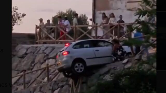 El hombre dejó la mitad de su coche suspendido en el aire al romper la valla de seguridad en la escollera.