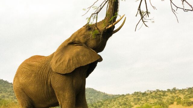 Estos paquidermos son herbívoros. Para mantener su enorme tamaño corporal, necesitan comer durante unas 15 horas diarias y pueden llegar a consumir hasta 150 kg de plantas cada día.