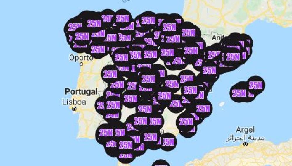 Este viernes 22 de noviembre se celebraron ocho marchas, el sábado se convocaron 21 y el domingo hubo un total de 43. Este lunes, Día Internacional de la Eliminación de la Violencia contra la Mujer hay convocadas 259 manifestaciones. Para no perderte nada, en este mapa interactivo, elaborado por Carlos Benéitez e Irene Martínez, puedes consultar todas las acciones previstas.