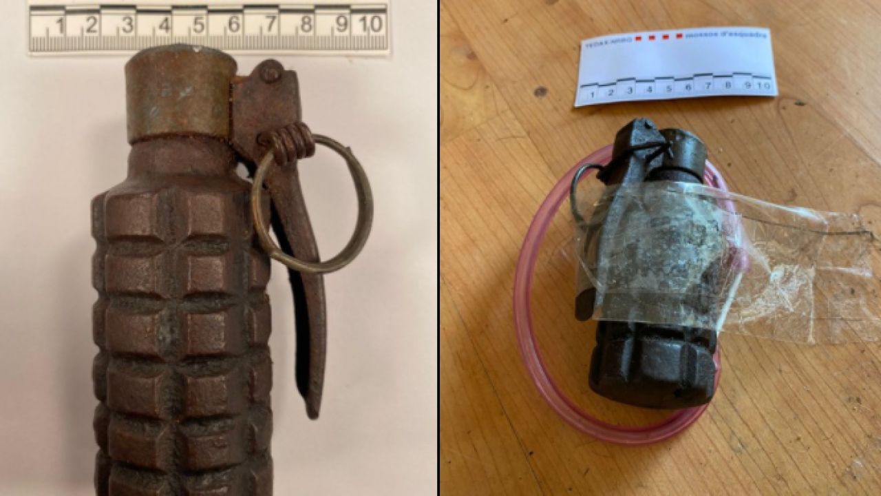 Además los detenidos dejaron en el centro del comedor una granada de la Guerra Civil envuelta en cinta adhesiva transparente, lo que dificultaba su manipulación.