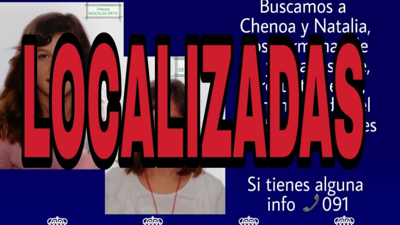 Tras la aparición de las dos menores, la Policía ha comunicado vía Twitter que ya han sido encontradas: "GRACIAS por vuestra colaboración. Chenoa y Natalia han sido localizadas y se encuentran en perfecto estado".