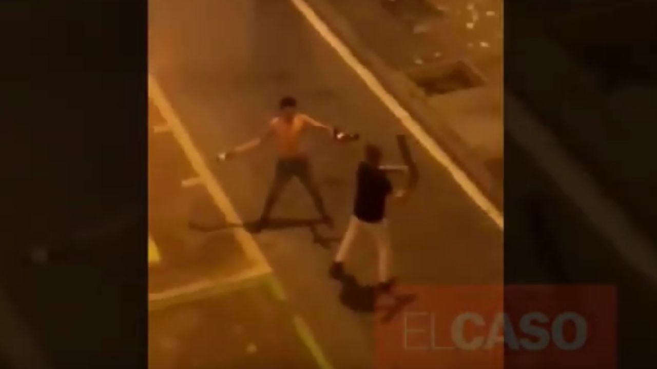 En el vídeo, al que ha tenido acceso ElCaso.cat, aparecen dos hombres peleándose con palos y botellas de cristal. Ambos son de origen magrebí e iniciaron el enfrentamiento por un presunto robo, según han detallado los testifos de la escena.