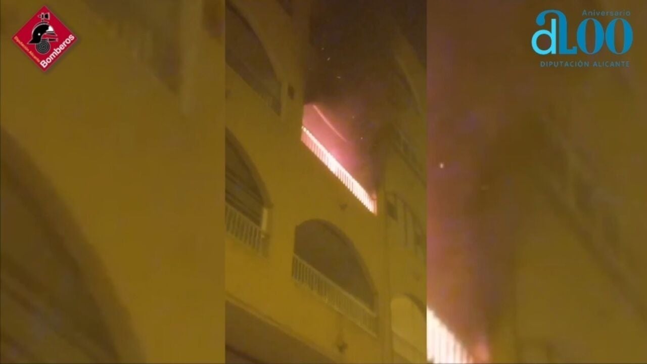 Una vivienda ha quedado totalmente afectada por un incendio en el que al menos 15 personas han sido desalojadas de un edificio de la localidad alicantina de Torrevieja. El fuego afectó a un edificio de 5 plantas del casco urbano, concretamente en el número 2 de la calle Tomillo.