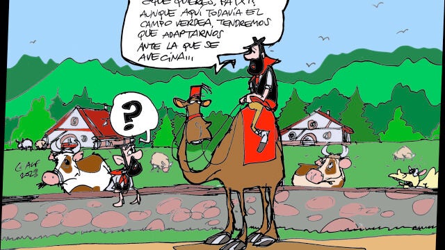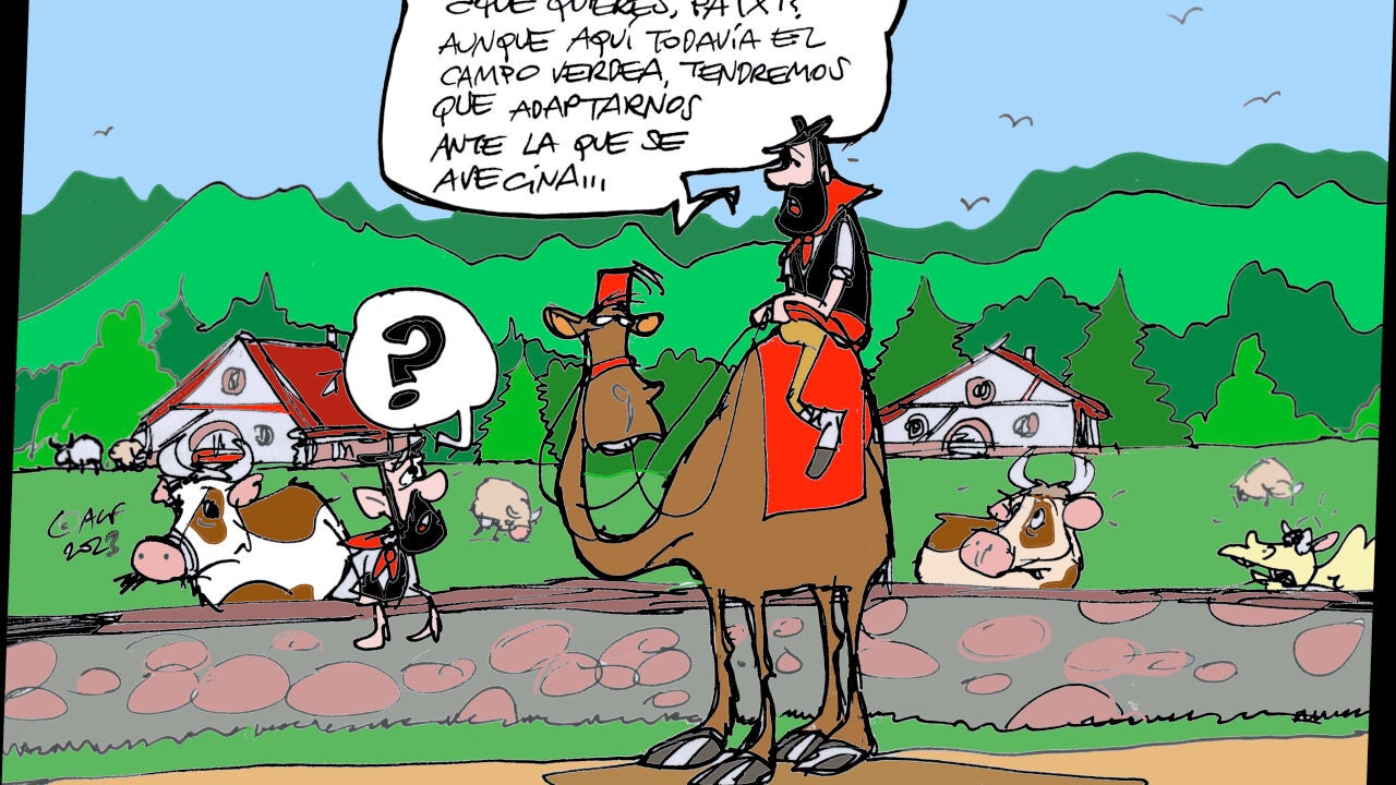 ¿Qué sucederá si sigue la sequía? Las consecuencias ya están provocando cortes y restricciones en algunos puntos de España. "¿Qué quieres, Patxi? Aunque aquí todavía el campo verdea, tendremos que adaptarnos ante la que se avecina...", comenta Alfredo Boto-Hervás en la viñeta gráfica de la semana.