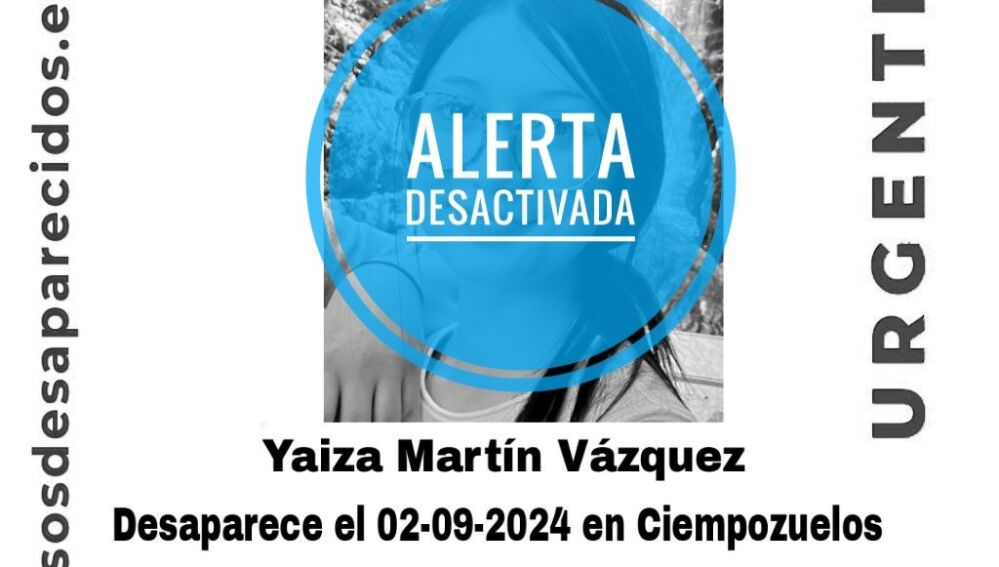 La Asociación SOS Desaparecidos alertaba de la desaparición de Yaiza Martín en la localidad de Ciempozuelos (Madrid). La joven de 15 años fue vista por última vez el pasado lunes 2 de septiembre en el municipio madrileño.